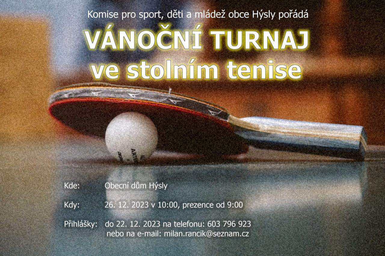 Komise pro sport, děti a mládež Vás zve na turnaj ve stolním tenise. Neseďte o Vánocích jen u televize, přijďte si zasportovat!