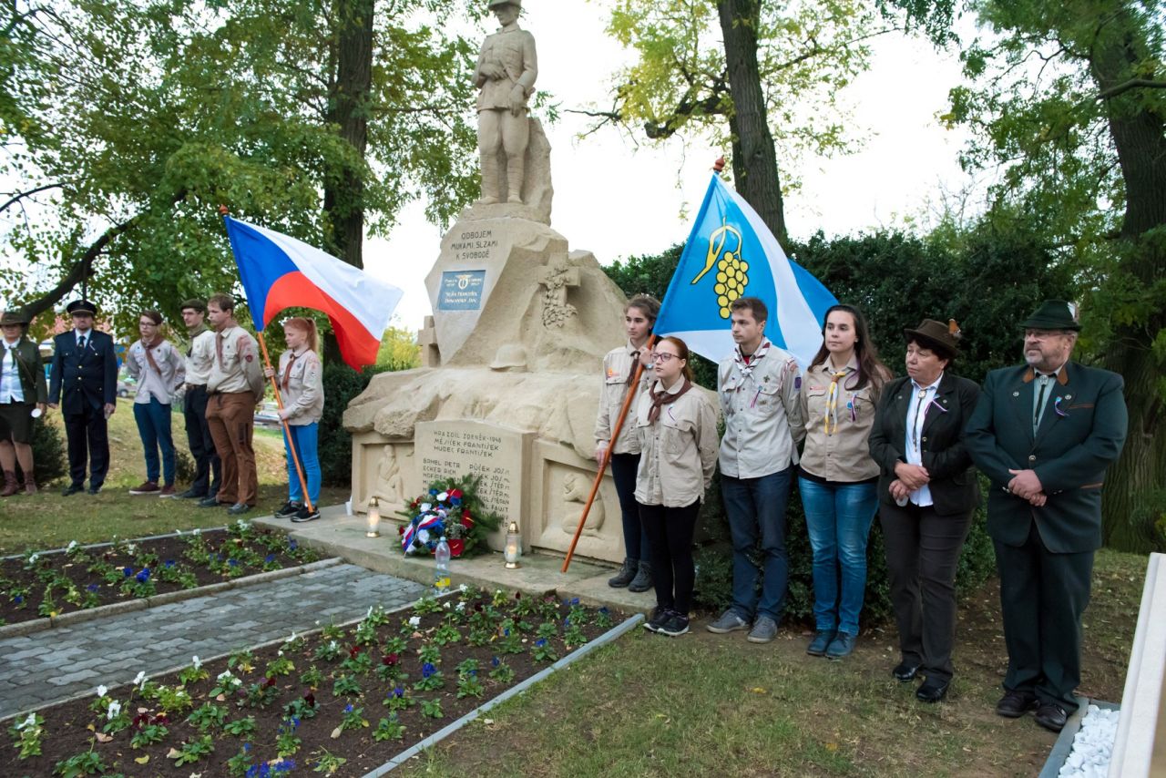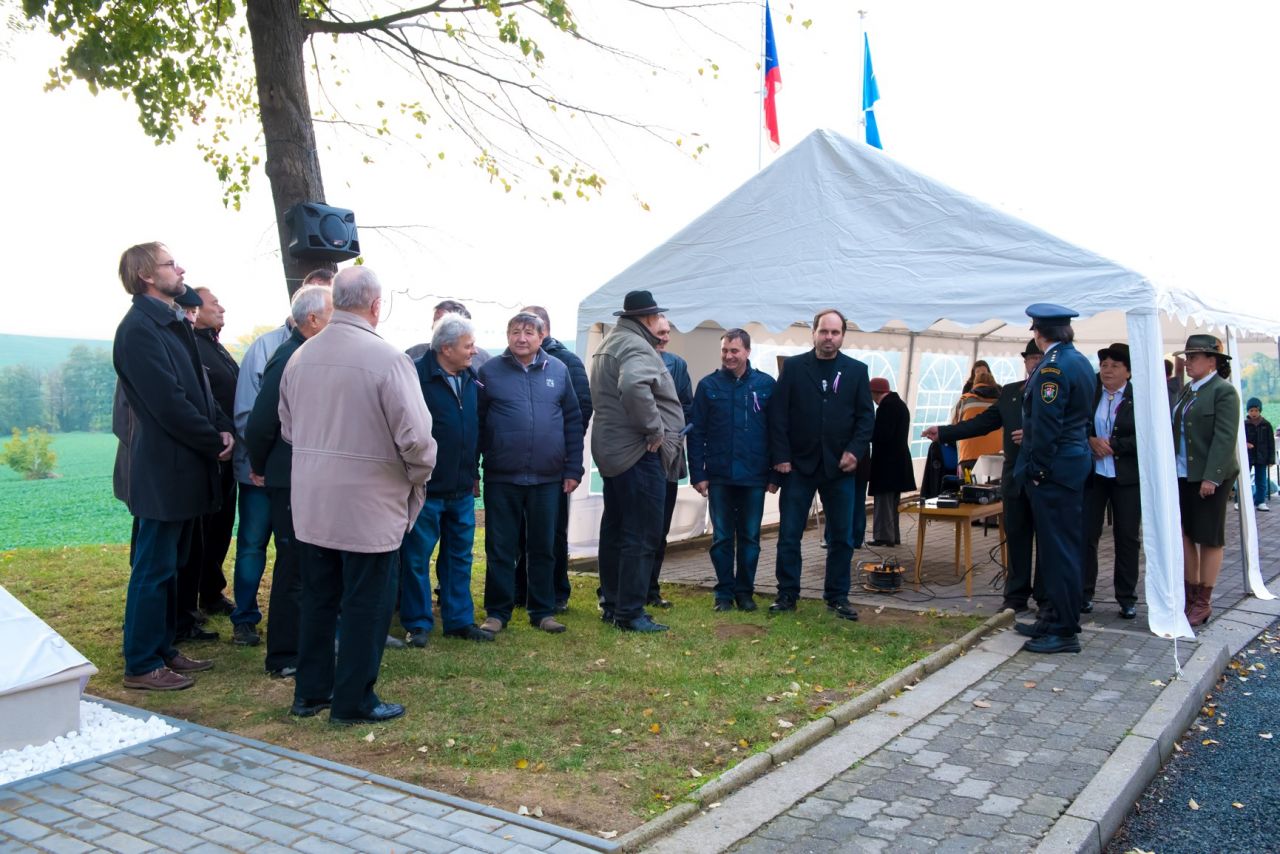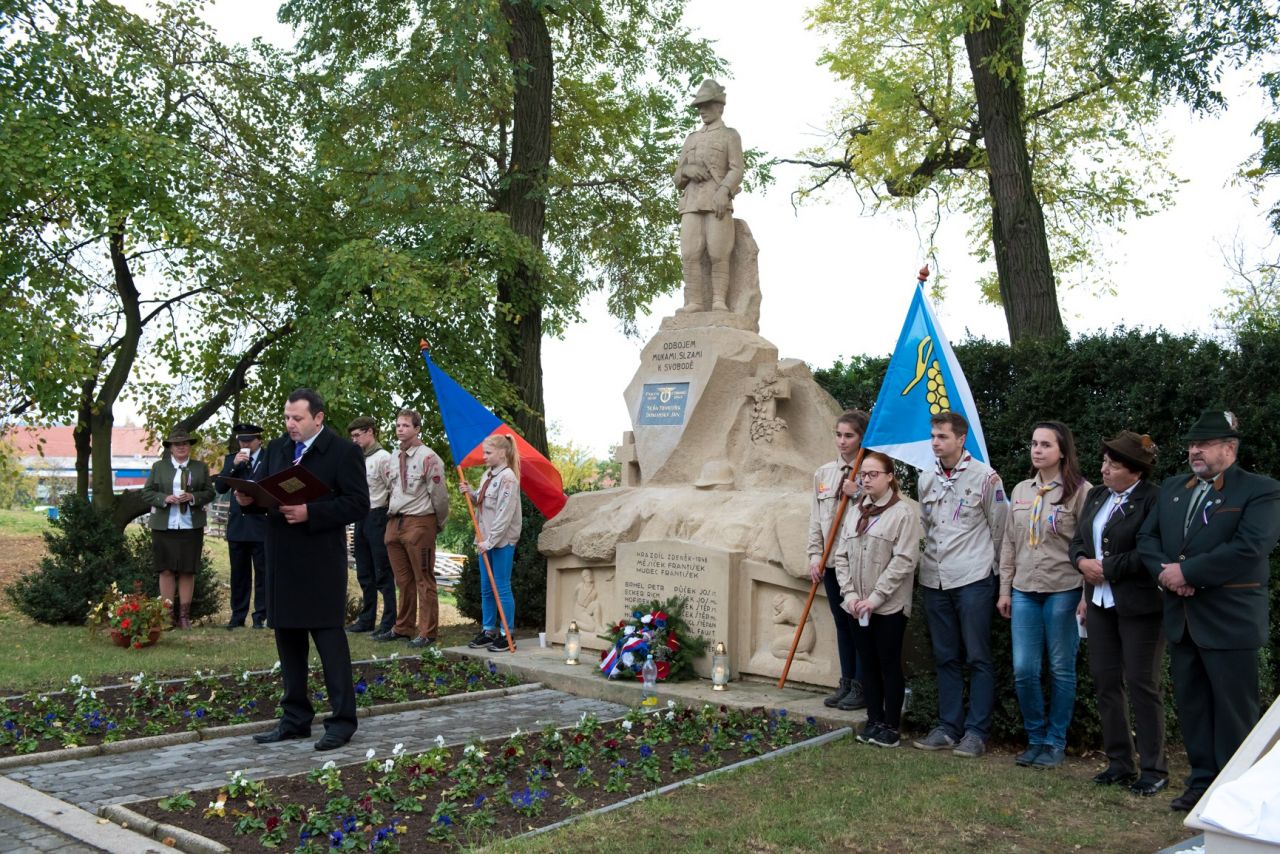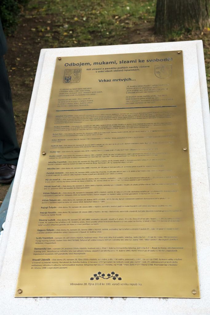 Slavnostní odhalení pamětní desky ke 100. výročí vzniku republiky. Věnováno našim padlým.