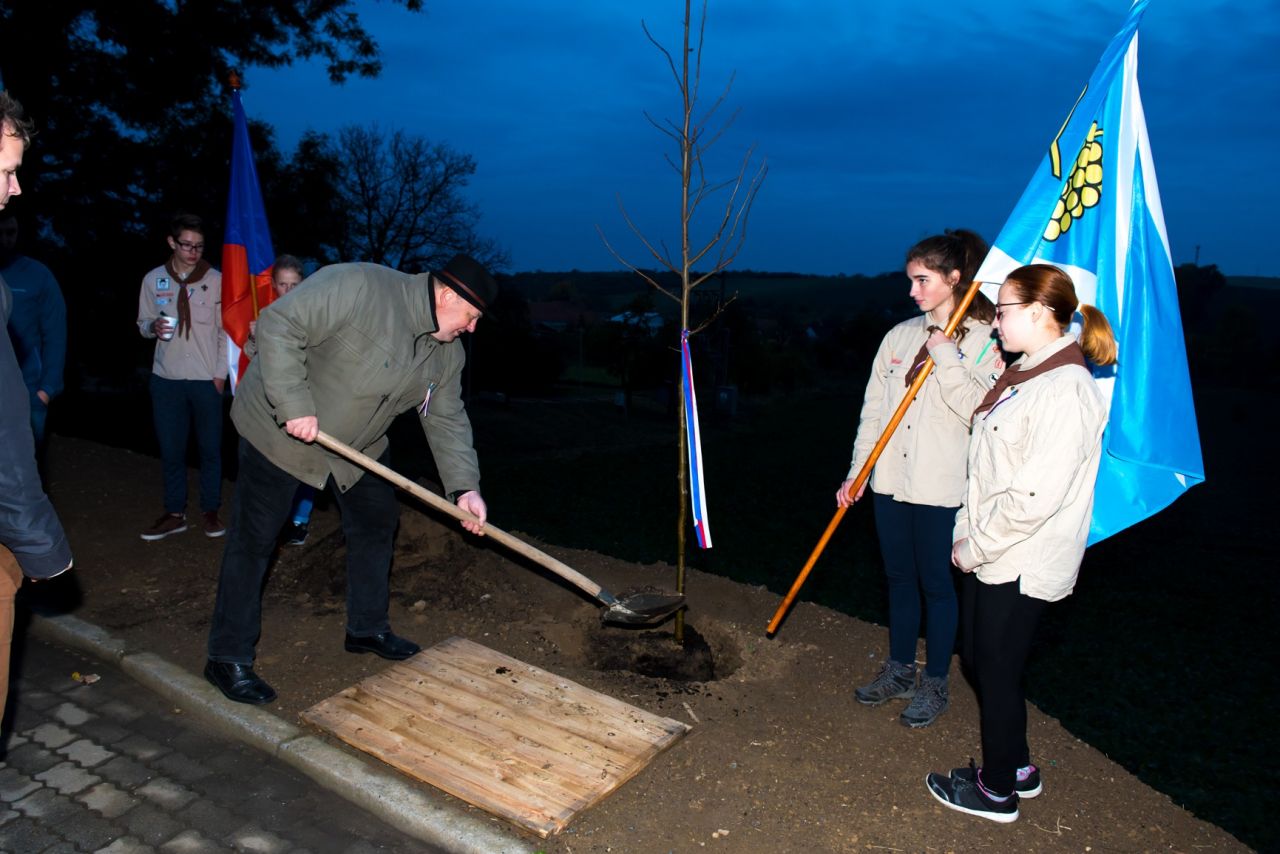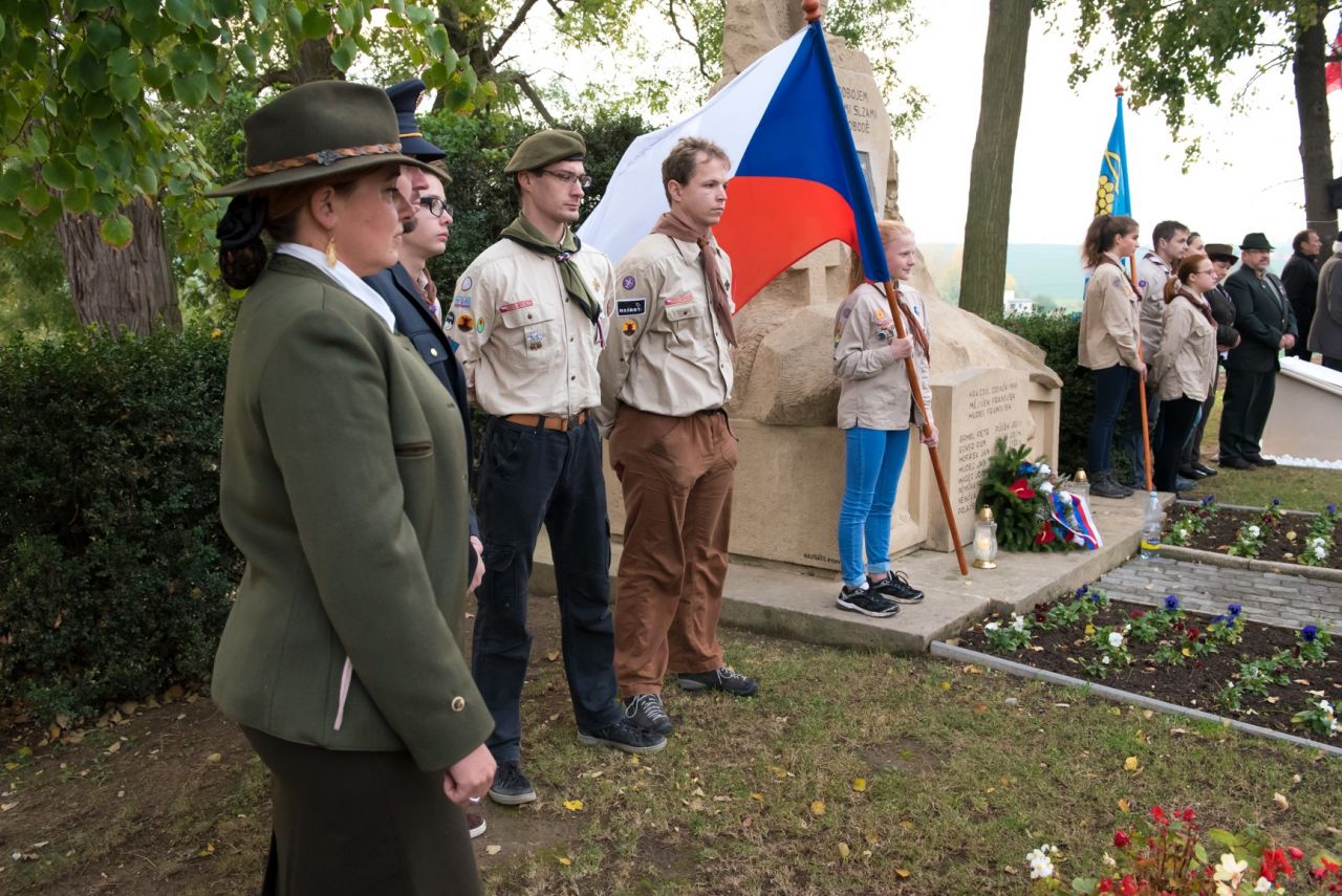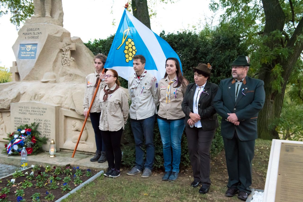 Slavnostní odhalení pamětní desky ke 100. výročí vzniku republiky. Věnováno našim padlým.